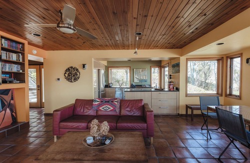 Scenic and Cozy: Hardwood floors, large windows, and breathtaking lake views.
