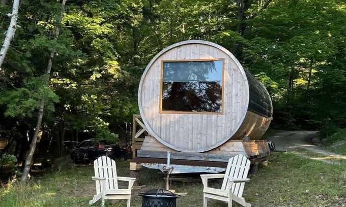 Escape to the charming Barrel Cottage at Mill Lake near Parry Sound, designed for two people looking for a quiet getaway. This lakeside retreat offers beautiful views of the lake, perfect for those looking to relax in nature. The barrel has a private fireplace where you can enjoy a stellar night. The sandy beach and pier are just steps away for swimming, kayaking, or just relaxing along the shore. Ideal for a quiet retreat close to nature.