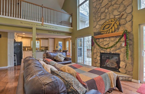 Escape to Blue Eye for nature beyond compare, memories to last a lifetime, and abounding comforts at this 3-bedroom, 2-bath vacation rental nestled along the shore of Table Rock Lake. In the summer months, head down the private, wooded path to the shoreline to fish and swim before ending your days by making s'mores at the fire pit. Come winter, soak in the hot tub, visit Branson's holiday light displays, or snuggle up by the gas fireplace. No matter the season, fun comes easily at this cottage!
