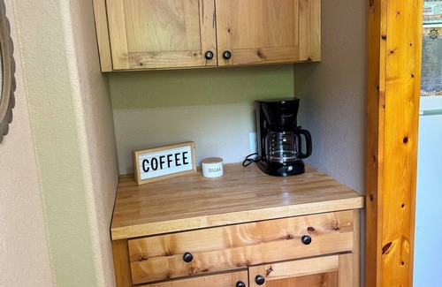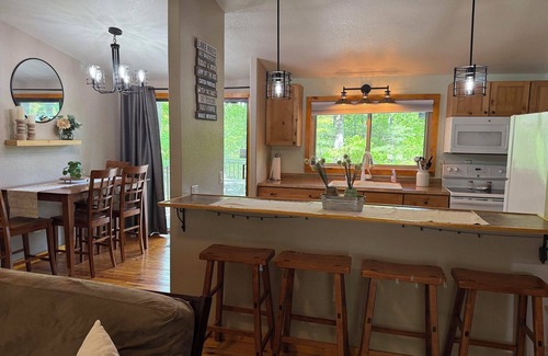 The cabin has approximately 1000 sq ft of coziness! There are two smaller private bedrooms. Master bedroom has king size bed with private bathroom with tub/shower combo. Guest room has queen size bed and closet. Newly remodeled hall bath has stand up shower. The living area features 2 full size futons, a smart tv, and electric fireplace. The kitchen is equipped for all your cooking needs with separate coffee bar area. Please note the cabin does not have a dishwasher. All dishes must be washed by hand and put away. The laundry room has washer and dryer available. High speed, reliable wifi internet is available for guest use but must use own logins for Hulu, Netflix, YouTube tv, etc.