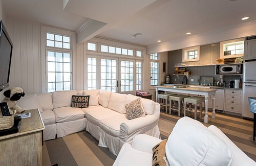 The second floor of Elodie Cottage has 3 bedrooms and 3 full baths. The well appointed Master bedroom has a king bed and full en suite bathroom along with a spectacular lake view. Grab your favorite read, head out to the deck just off of this room and cozy up on the outdoor daybed. On this floor you'll find another beautiful guest room with a queen bed, it also opens onto the outdoor deck. This room has use of a full bathroom just outside of the bedroom. There is one more guest room on this floor with a queen bed and a full en suite bathroom.