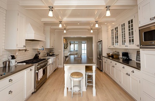 The main floor is home to the beautiful and fully stocked kitchen, all high end appliances and a huge island for gathering. The kitchen opens right into the dining area and the living room. Just off of the living room is a large deck overlooking the pool and lake, where you'll find a beautiful outdoor dining area and other lounge seating.