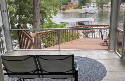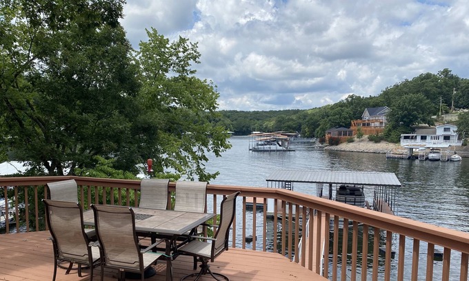 Come relax by the lake in this gorgeous home in a quiet cove. Three decks plus a screened in porch offer beautiful views of the sunset. Private dock with one boat slip included. Two kayaks are provided for your enjoyment. Calm waters in this cove are perfect for lounging on the lily pad. Located at MM 19.5 & close to all the action. Dog Days and Backwater Jack’s are just across the channel. Close to the Bagnell Dam Strip as well as lots of shopping within 10 minutes. Plenty of parking! Newly painted!