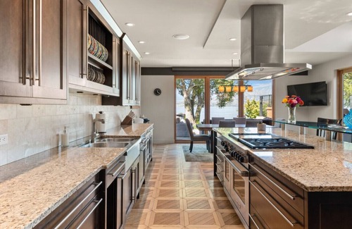 - Accommodates 10 guests: 4 bedrooms with 5 beds (2 kings, 2 queens, 1 sofabed), 7 bathrooms
