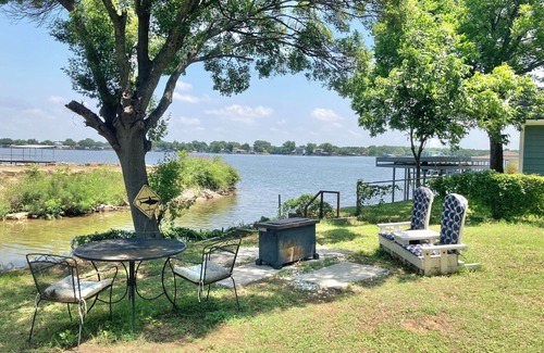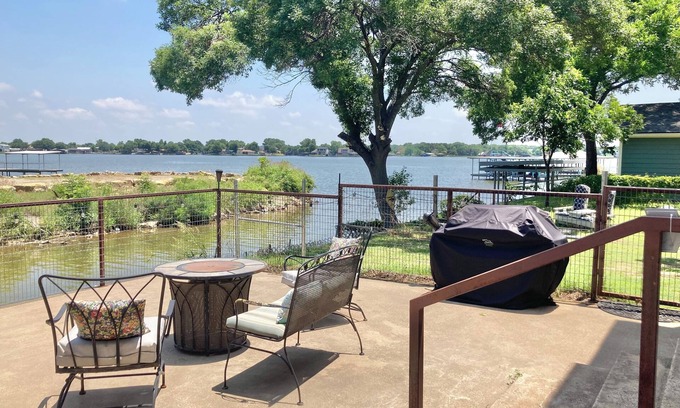 Welcome to our Lakefront Hidden Cove Guest Suite (Unit A)! 1,000 sqft Duplex unit with private entrance and beautiful lake views from 1st and 2nd floor. Private patio with seating and lake views. Shared waterfront grass yard with fire pit. Community dock visible from the suite (1 min drive/5 min walk) to fish/launch watercraft. Pet friendly. 7 minute drive to Historic Granbury Square and City Beach! No swimming directly from the property as we have a high sea wall. Unit is attached to the main home with one shared wall and a separate entrance. All indoor spaces and patio are private to guests. Guests will walk around the grass yard to the right of the main home to access the guest suite. Keyless entry with code.