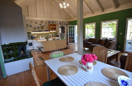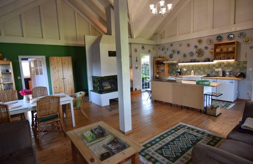 Lakefront vacation home with private beach and hot tub. The large terrace and the well-kept garden invite you to relax and play. Access to the lake is private. A rowing boat and 2 kayaks are available to guests free of charge. There is also a boat slip if you arrive with your own (motor) boat or scooter. You can buy a fishing license for the lake Zarnowieckie on site. There are many activities in the area. In about 800 m distance there is an open-air museum and a windsurfing school with rental. In about 15 minutes by car you can reach the Baltic Sea resort of Debki with very beautiful, wide beaches. 2 bicycles are available to guests free of charge. About Belvilla At Belvilla, you experience holidays exactly the way you want. Choose from an extensive range of holiday homes, apartments and caravan parks from Europe to Florida. From a cabin by the Norwegian fjord to an exclusive villa on the Côte d'Azur, and from an apartment in Rome to a country estate in Tuscany. At Belvilla you will find the perfect holiday home for an unforgettable time with your family, partner or friends. You will also find holiday homes for larger groups, spread across various regions in Europe. Belvilla offers a wide variety of holiday homes: small and cosy with a sauna or spacious with an outdoor pool, roof terrace and numerous bedrooms. At Belvilla, for example, you can choose from holiday homes in prime locations, with luxury amenities and homes particularly suitable for families. Of course, many holiday homes also have a space reserved for your dog. You can choose from practical holiday homes in popular holiday destinations, city houses in cosmopolitan cities such as Venice or Rome, dreamy holiday homes in top locations and spacious holiday homes with unique furnishings. Besides holiday homes by the sea, Belvilla also offers holiday homes with swimming pool and/or wellness facilities.