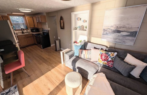 This beautiful, freshly remodeled 2 bedroom, 1 bath home sits directly on Cloverdale Lake. The deck is right on the water's edge, and a private beach and dock are all yours! We welcome dogs to stay with you completely free!