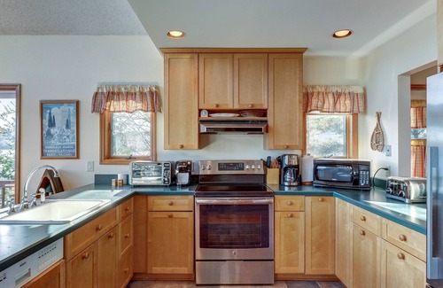 The master bedroom upstairs is located just off the balcony catwalk, and the lowest level has a rec room with books, videos, and board games. There's also a laundry area on the lower level. Large patio doors lead out to a landscaped grassy area with a slate patio and hammock, with a set of stairs leading down to the private dock and shoreline with amazing views of the lake and the mountaintops. It's also just a mile to quaint Schroon Lake Village, with a public dock, pretty beach, and shops to explore. Reserve this tastefully decorated year-round home for your next unforgettable vacation!