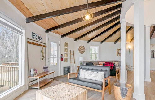 Sunbathe on the spacious deck in the summer months, or take a quick drive to one of the nearby parks for a hike or a picnic. In the evenings, enjoy laughter and drinks around the beachside firepit. Wintertime visitors can spend their days traversing the ski slopes at Bittersweet Resort before returning to home base for a snuggle by the fireplace. Facilitate some family bonding time by challenging one another to some competition in the downstairs game room before calling it a night. Children's books are also available for younger guests.