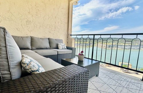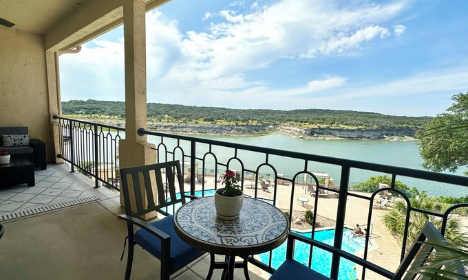 Just listed! Our 3rd villa at The Island on Lake Travis! Experience waterfront luxury at our top floor villa with stunning deep water views and elevator access! Watch enchanting sunsets on Lake Travis' private island. Enjoy WiFi, in-villa washer dryer, weekend salon/spa, restaurant and three pools (one is heated indoors), hot tubs, saunas, fitness center, shuffleboard, and pickleball and tennis! Maximum 4 guests, including infants and children. Must be 21+ Additional villas available.