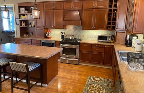 Guests have use of the entire main house and an additional cottage that’s on the property. The cottage is one big open space with a gas fireplace, pool table and SmartTV. This is a fun place to hang out and play games with amazing lake views. This space makes even a rainy day on the lake a treat. Guests also have use of the deck above the boathouse, two docks where you can tie up your own boat and use of the floating swim platform right offshore. There is a lakeside fire pit and Weber gas grill. Also included in the rental are 4 kayaks and 1 canoe.
