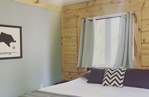 LAKEFRONT LOG CABIN- 24’ dock, gradual sandy entry, kayaks & wifi is located in Nipissing. LAKEFRONT LOG CABIN- 24’ dock, gradual sandy entry, kayaks & wifi provides accommodation, featuring Sports/Activities, Wellness Facilities, Fireplace/Heating, among other amenities. This Cottage features Sports/Activities, Wellness Facilities, Fireplace/Heating, to make your stay a comfortable one.