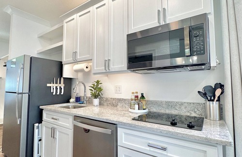 Common Area/Bedroom #14: The King studio. Sleeps up to 4: King bed and queen sleeper sofa. This house is a open concept/studio type home. Access to the full bathroom with shower on the main level. The king bed, living area, kitchen, & bathroom are all on the main level. (See pictures).