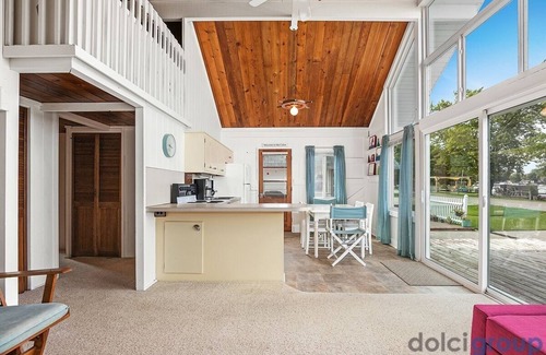 Relax and Enjoy this Cute Lakefront A- Frame on All Sports Green Lake, in Caledonia, MI, while still being close to the City. This rental includes Master Bedroom with queen bed, Loft that sleeps 4, pullout sofa and 2 Bathrooms. Patio off the front as well as lake side deck and dock available for your boat all only steps away from the cottage. Fully furnished kitchen, grill. and washer/ dryer included.