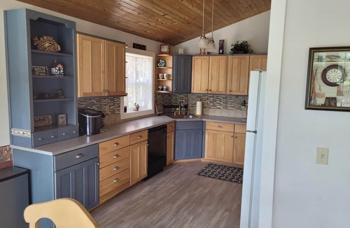 Keep this in mind when you choose a home to rent. Our vacation home is located on Neechen Bay which is on the east side of the lake, across the bay from the new Gosser Ranch Golf and Lake Club, and just minutes from town. This newer, modern home is very tastefully done with lots of amenities including WiFi. Our home has lots of large windows with exceptional views of the lake.