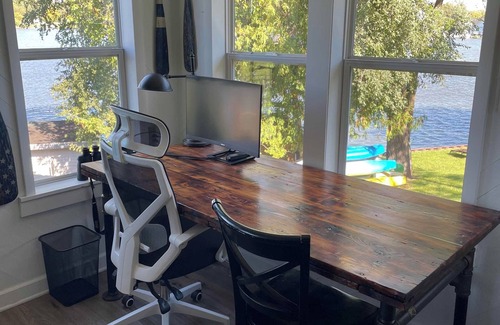 The home offers 1 Gig fiber Internet with symmetrical upload and download speeds, making it ideal for remote work. There are 3 desks with dedicated workspaces for up to 4 people, in addition to the dining room table.