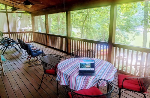 Lakefront retreat with huge screened-in porch is located in Locust Grove. Lakefront retreat with huge screened-in porch provides accommodation, featuring Barbecue/Outdoor Cooking, Air Conditioner, View, among other amenities. This House features Barbecue/Outdoor Cooking, Air Conditioner, View, to make your stay a comfortable one.