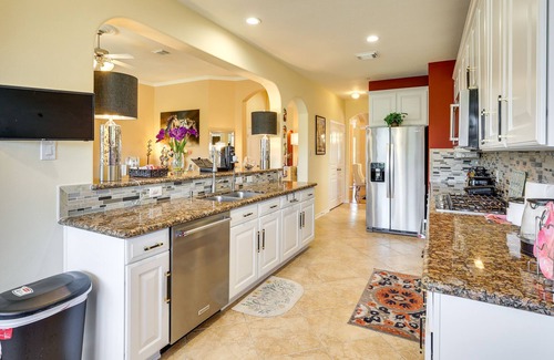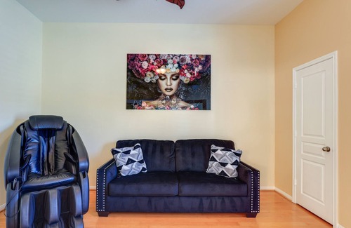 Indulge in the finer things when you stay at this chic 4-bedroom, 2-bathroom Cypress vacation rental! With its fully equipped kitchen, remodeled interior, private dock, and access to community amenities, this home has everything you'll need for a peaceful getaway. Spend your days shooting pool, fishing from the dock, soaking in the hot tub, relaxing in the massage chairs, or picnicking at Hermann Park. End the night by the fireplace, watching movies and munching on your favorite snacks!