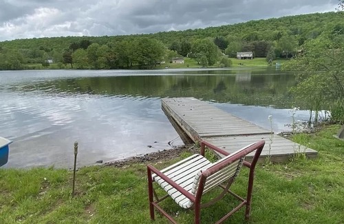 5 bedroom, 3 bath, lakefront on Lake Ag-Mar with its bass and paddle boat, private dock, and an outdoor six person hot tub makes it the perfect rental in a great location. It has a recreation room with a pool table and large TV, a fully equipped kitchen, and a nice-sized glass enclosed porch overlooking the lake area, plus decking. Pet friendly