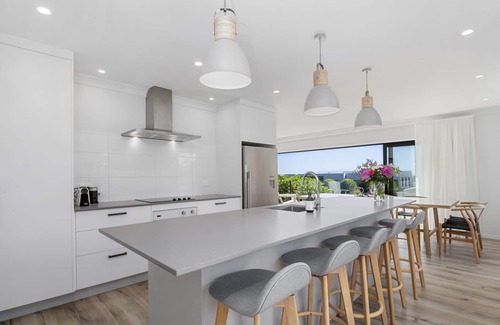 Enjoying an elevated position in the central Taupo suburb of Hilltop, Lakehaven is a contemporary and comfortable holiday home featuring a light and bright open-plan living space just calling out for you to make yourself at home in.