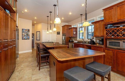 WINTER stays ~ ❄️ ⛷🏂 🛷 Only 20 minutes from Wilmot Ski Resort. Enjoy the new and improved resort after its recent 13 million dollar makeover. Ski, snowboard or enjoy the huge tubing hill. Beautiful lakefront property in prime location! This modern style 3,150 square foot home is perfect for entertaining inside and out! East view has a 3 story WALL OF WINDOWS overlooking the bay. PERFECT for morning sunrises 🌅 and just great views all day long. The 1st level has a master suite with fireplace, his and her bathrooms and huge shower. Also on the first level is a cooks kitchen with 2 ovens, a GIANT refrigerator and 2 center islands, both with seating. Also featuring a 2nd fireplace in the living room.