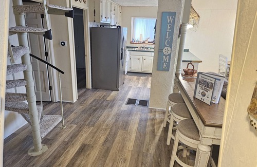 The dock is across the street and the end of the peninsula. Picnic table, kayaks, paddles, and life jackets are provided at the dock for your enjoyment during your stay with us.