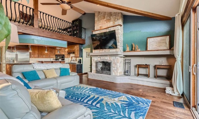 Lakeside Cabin Spacious Patio/Treehouse Sleeps 12 is located in Jonestown. Lakeside Cabin Spacious Patio/Treehouse Sleeps 12 provides accommodation, featuring Air Conditioner, Bedding/Linens, Fireplace/Heating, among other amenities. This House features Air Conditioner, Bedding/Linens, Fireplace/Heating, to make your stay a comfortable one.