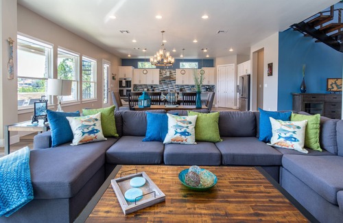 This sprawling 4,200 sq ft, two-story home comfortably accommodates up to 10 guests with 5 bedrooms and 3.5 bathrooms.