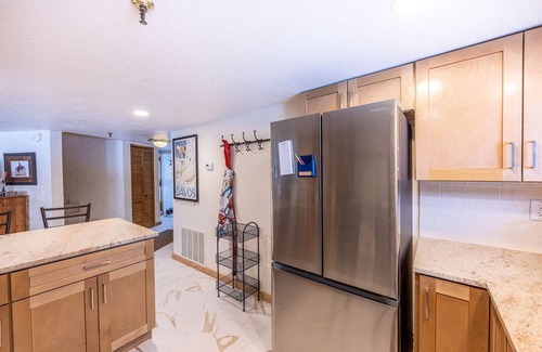 The heart of this home is its brand-new gourmet kitchen, completely renovated in December 2024. This stunning space features state-of-the-art appliances, an inviting breakfast bar, and a comprehensive collection of cookware, making it a chef's paradise. The thoughtfully designed layout seamlessly connects to the main living area, where a cozy gas fireplace and comfortable seating create the perfect gathering space for après-ski relaxation.