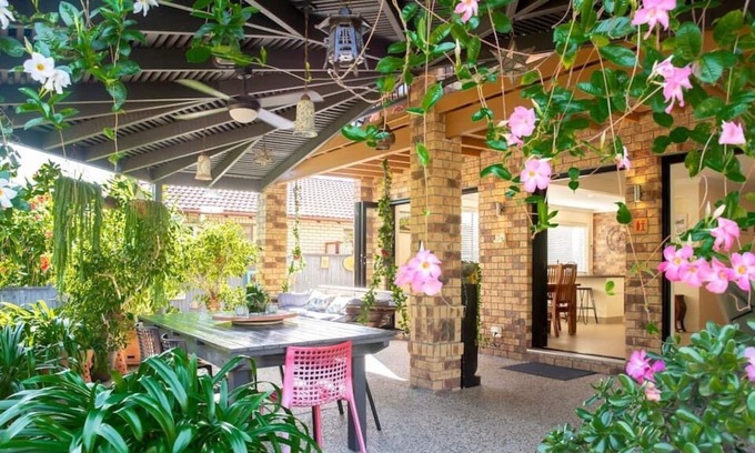 Beautiful under cover outdoor entertaining area equipped with a BBQ & all utensils provided. Yard for the kids to play in and an endless amount of toys, bikes, scooters, balls, beach items, children's books/games and more!