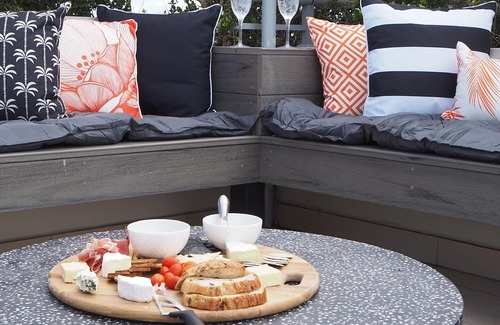 The stylish kitchen is fully equipped with a full-size fridge/freezer, microwave, dishwasher, oven and stove top and coffee machine. Dinnerware and glassware for 8 is provided as well as plenty of acrylic ware for use in the spa and on the rooftop.