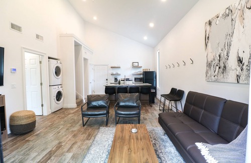Our name says it all.. The VIEW on Grand. For the discerning traveler with high-end comfort in mind. Six midcentury modern cabins right on the waters edge just outside Grove, Ok. A perfect location to relax and enjoy the open water view from your deck. Perfect Unobstructed lake views from every room. Deep water for fishing right outside the cabin at the shore (locals frequent this gem of a fishing hole). Walk or drive across Honey Creek Bridge to local restaurants, Honey Creek Landing Marina, and the upcoming Grand River Dam Authority park. We set the gold standard for cleanliness, luxury, and comfort. *Pets are not permitted at this location. If you would like to bring a pet please see our sister site careybaycottages.com.