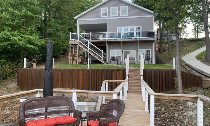 Welcome to Lakeside Paradise! This beautiful 4 bedroom, 3 &1/2 bath is located lake front on Lake Freeman. This is the perfect place for large families to get away, relax, and enjoy lake life. The open floor plan is great for indoor and outdoor entertaining. It has a newly furnished large kitchen with a 12 person table and large island for all to enjoy. The multi level home has space for everyone. There is an outdoor porch with a grill, 12 person covered table, and plenty of lake views. There is something for everyone here. Take a swim in the lake, sun bath on the top dock, fish off the dock, take a trip out on the kayaks, make s'mores around the fire pit, or sit on the deck with a good book. You will make memories to last a lifetime!
