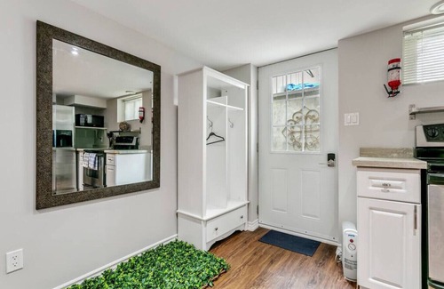 Guests have access to a full kitchen, a cozy living area with a TV, a dining table, and a dedicated work area. Additionally, laundry facilities are available for your convenience. Experience a straightforward and comfortable stay in this inviting space.