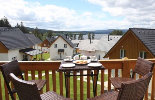 Child friendly, modern resort "Lakeside Village". 45 houses in the resort. 10 apartments in the residence. Outside the resort, in a quiet, sunny position, on the lake. For shared use: property. In the complex: reception, bar, bistro, kiosk, bicycles available bicycle rental. Available: boat (extra). Bread roll service and breakfast on request. In Winter: please take snow chains. Parking at the house. Bus stop"Frymburk Vřesná, rozcestí" 3.5 km, bathing lake "Lipno". Riding stable 500 m, ice rink 11 km. Nearby attractions: Aquaworld, Marina Lipno, Bobová dráha, Lanový park, Bikepark (Lipno) 15 km, Český Krumlov (UNESCO) 35 km. Well-known ski regions can easily be reached: Frymburk 5 km, Kramolin 15 km, Sternstein 25 km, Hochficht, Sterngartl 40 km. Hiking paths: Stezka korunami stromů (Lipno) 15 km. Please note: baby equipment on request (extra). Object suitable for 5 adults + 1 child. Fishing [permit required], private mooring. The photograph shows a typical example. All houses/apartments are individually designed/furnished.