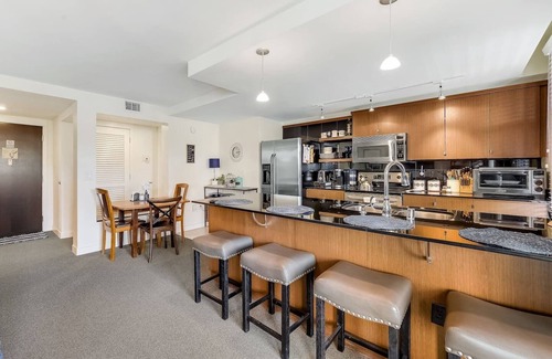 This condo provides all the comforts of home and a great place to relax and reconnect with loved ones. Ideal for a quiet executive workspace or a peaceful getaway for couples, friends, or small families traveling together. Connect with high-speed internet, enjoy cooking together, play games, watch TV or just take in the spectacular balcony views over morning coffee or evening happy hour. If relaxing is your thing, you might also enjoy the on-site pool and jacuzzi. Spa enthusiasts will appreciate the two nearby spas that provide therapeutic massage and skin treatments as well as steam, jacuzzi, and relaxation rooms. Once you arrive, you`ll find all you need at the Village, a short five-minute walk just across the bridge next door. You might enjoy the beauty of this area so much that you find no reason to leave until it`s time to go home!