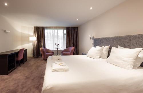 Amid its green estate, this hotel provides romantic rooms, a luxurious wellness - and fitness center. Enjoy the refined restaurant, private wine cellar and cozy lounge bar with fireplace. Landgoed de Rosep offers beautiful private grounds and peaceful surroundings for your relaxing stay in charming Oisterwijk. Wake up each morning with a delicious breakfast buffet and decide to start your day with a stroll through the large garden. The estate’s excellent restaurant serves French cuisine, which can be accompanied by quality wines from the on-site wine cellar. The spacious rooms each offer many comforts, such as a private bathroom with bath. In addition to this, they all provide a great view of the wonderful forested environment. The large wellness center consists of an indoor swimming pool, hot whirlpool, Finnish sauna, bio sauna, infrared sauna and Turkish steam bath. In the beauty center you can reserve massages. You can also play tennis on the hotel’s all-weather court; have a workout in the fitness room; or rent bicycles to explore the wider area.The hotel offers also offers charging points for electric cars and bikes.