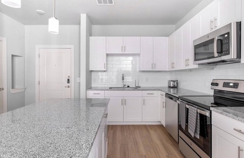 Located in the heart of Conroe’s vibrant neighborhood, Flats at Hooper Hill places you steps from shops, restaurants, and Candy Cane Park. Ideal for monthly or extended stays, each apartment features a full kitchen with granite countertops, a kitchen island, and spacious walk-in closets. Enjoy amenities like a fitness center, yoga studio, fenced dog park, EV charging stations, and high-speed WiFi, all within a gated community.