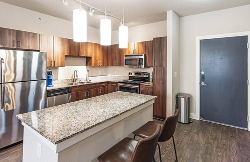 Stay just minutes from the River Walk at Lofts on Main. Perfect for monthly or extended stays, our fully-furnished apartments feature open layouts, washer/dryer, fast WiFi, and full kitchens with granite countertops and stainless steel appliances. Enjoy access to a resort-style pool, dog run, modern fitness center, and resident lounge. Walk to the San Antonio Museum of Art, grab a bite at The Pearl, or unwind in the Japanese Tea Garden.