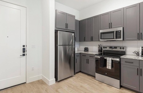 Welcome to Railyard in Denton, TX! Perfect for monthly or extended stays, our fully-furnished apartments include full kitchens, fast WiFi, stylish furnishings, in-unit laundry, and a dedicated workspace. Stay active in the two-story fitness center with private workout studios, work remotely in the professional co-working center with public and private areas, and enjoy property-wide high-speed WiFi.