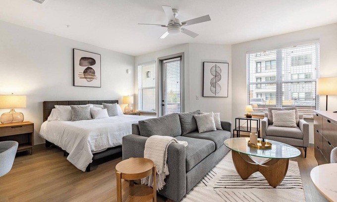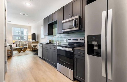 Welcome to The Standard on the River! Explore our curated collection of upscale homes in Houston’s East Downtown District, conveniently located near Buffalo Bayou Park. Our fully-furnished apartments feature sophisticated interior finishes, full kitchens with modern appliances, in-unit washer and dryer, and a full suite of premium amenities. Just outside your front door, enjoy a state-of-the-art fitness center, resort-style pool, coworking space, pet spa, and dog park.