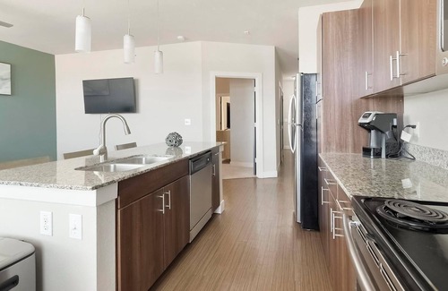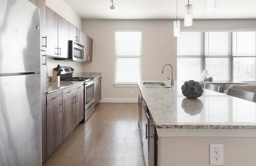 Stay just minutes from the River Walk at Lofts on Main. Perfect for monthly or extended stays, our fully-furnished apartments feature open layouts, washer/dryer, fast WiFi, and full kitchens with granite countertops and stainless steel appliances. Enjoy access to a resort-style pool, dog run, modern fitness center, and resident lounge. Walk to the San Antonio Museum of Art, grab a bite at The Pearl, or unwind in the Japanese Tea Garden.