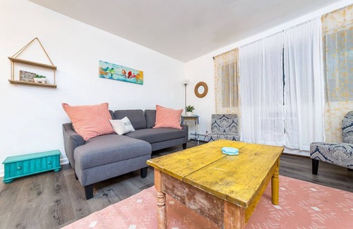 There are fifteen parking spots in this eleven unit building. Parking is in the rear and side of the building. You are free to park in any spot you'd like :) Apartment #12 is located a couple steps up on the third level when you come in the back of the building, it will be on your left. This unit has a Queen bed in the bedroom. It also had a queen sized pull out sofa in the main living area. The space is best for 2-4 people.