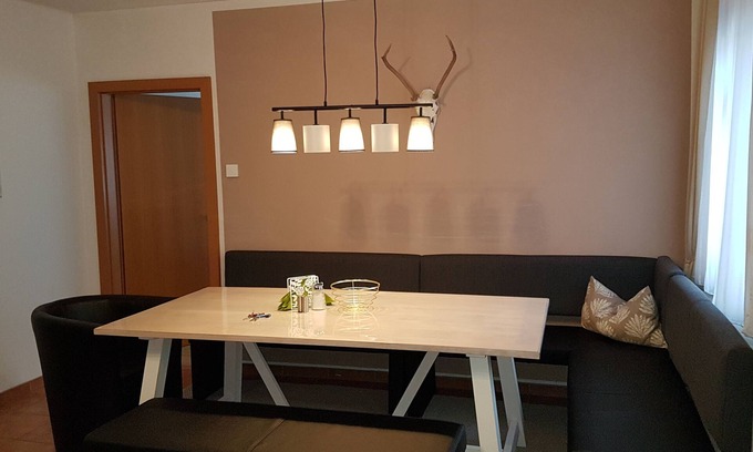 A ski storage room with boot dryer, bicycle garage, table tennis, outdoor games, badminton, barbecue are at your disposal. Of course there is a parking space directly at the house.