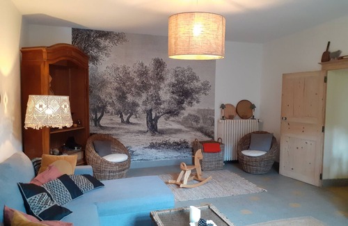 Rent large house nicely decorated, with a large room of 35 M2 with a double bed 140, a single bed 90 and a second room of 25m2 with a double bed. A large kitchen, fully equipped dining room, dishwasher, induction, microwave, Senseo coffee maker ..... A living room with TV, sofa bed and a desk. A bathroom with shower and toilet. A cellar, a boiler room with washing machine. All on fenced, independent, with a garden, a courtyard and a terrace with its living room. BBQ and bike loan possible, as well as baby. Wifi equipment throughout the house.