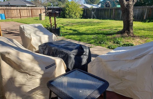 This beautiful large house offers 6 bedrooms with 1 king bed+5 queen bed+1 twin bed, 2 full baths, 2 living rooms, a bonus room and spacious kitchen, perfect for big group, comfortable stay for up to 14 peoples. The house has spacious kitchen with granite counter top and stainless steel appliances, biggest size refrigerators, 75 inches smart TV and 2 other 60" TV. Come sit and lounge on our comfy couches and sofa in our 2 living rooms with 2 fireplaces. All our bedrooms were supplied with brand new mattresses. Step out and relax at our huge backyard with shady outdoor sitting area and a cover patio with outdoor dining table and chairs. The house is centrally located near freeway and lots of shopping center. 9 miles to downtown Sacramento. 20 miles to SMF Sacramento International Airport.
