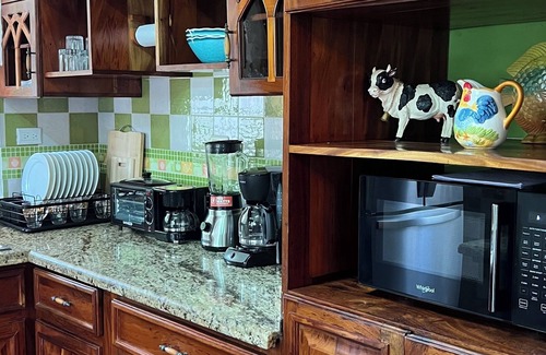 The kitchen is equipped with an oven and a refrigerator, as well as a coffee maker, a lobster pot, and a microwave. Enjoy the WiFi and TV. Bathroom amenities include a hair dryer, towels, and toilet paper. And because there's a washer and dryer, you can go a bit lighter on your packing. Other amenities at this 4-bedroom, 3-bathroom rental include bed sheets, an ironing board, and air conditioning.
