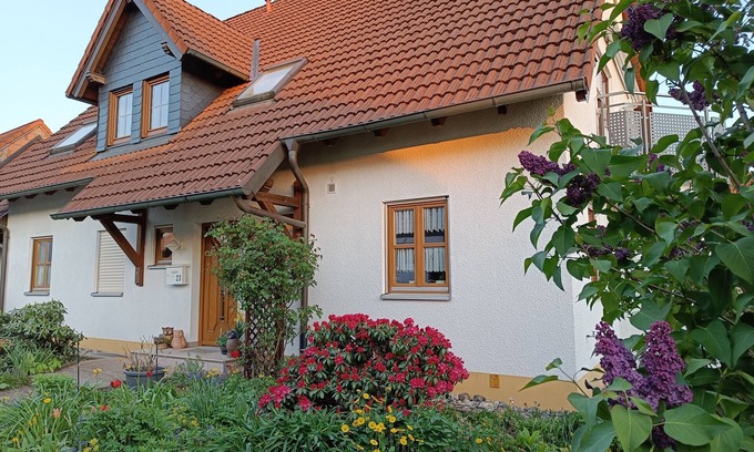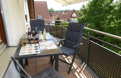 Our apartment is located on the first floor of our two-family house. The apartment consists of a large living room with comfortable dining area, a large bedroom with double bed and another smaller room with sofa (extendable and usable as a sofa bed for two persons). The spacious bathroom has a shower and a bath and toilet. In the fully equipped kitchen four people have enough space at the kitchen table. You can relax in the balcony equipped with an awning, table and chairs.