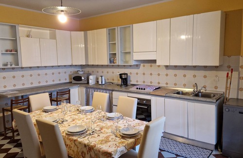 Large apartment all on the ground floor near the center and the beach of Desenzano (only 400 meters, there is a descent). The apartment has two large double bedrooms with respectively a double bed and a single bed, three bathrooms large kitchen large living room with sofa beds (outdoor space with table, no garden). Private parking and wifi.