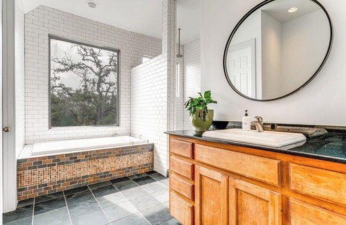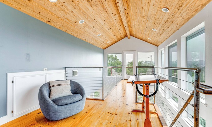 Revel in lake life at this 4-bedroom, 3-bath vacation rental in Austin! This tastefully-curated home, featuring an outdoor space with a fire pit and balconies with stunning Lake Travis views, is the ideal spot for friend groups or families. Take advantage of the beach access and spend your days soaking up the Texan sun, and afterward, return home for dinner and quality time with your group. Whether you plan to see downtown or simply enjoy all the on-site perks, this abode is sure to please!